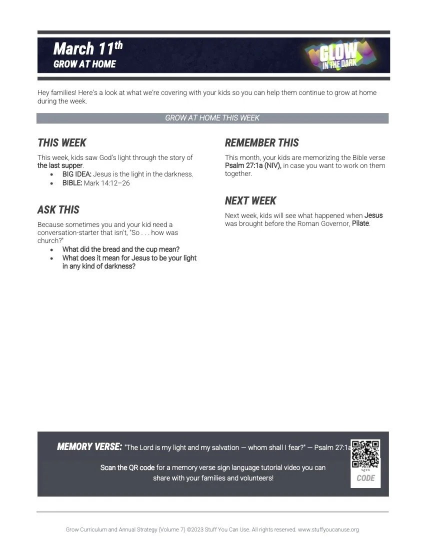 Every week you will receive an email with what your child learned and how to apply it throughout the week through our family resource. We also repeat the weeks' themes on Facebook and Instagram. -